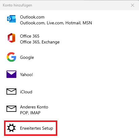 Choose advanced settings (Erweitertes Setup on the screenshot)...