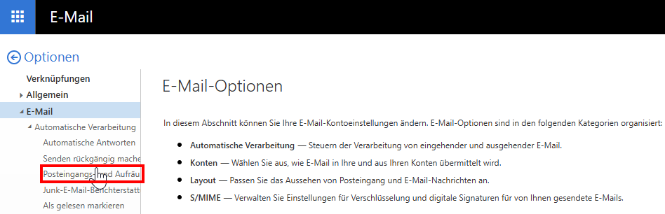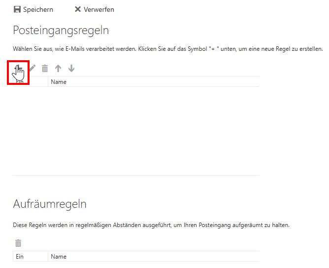 Click on E-Mail > Automatic processing and then Inbox and clean-up rules in the navigation bar on the left.