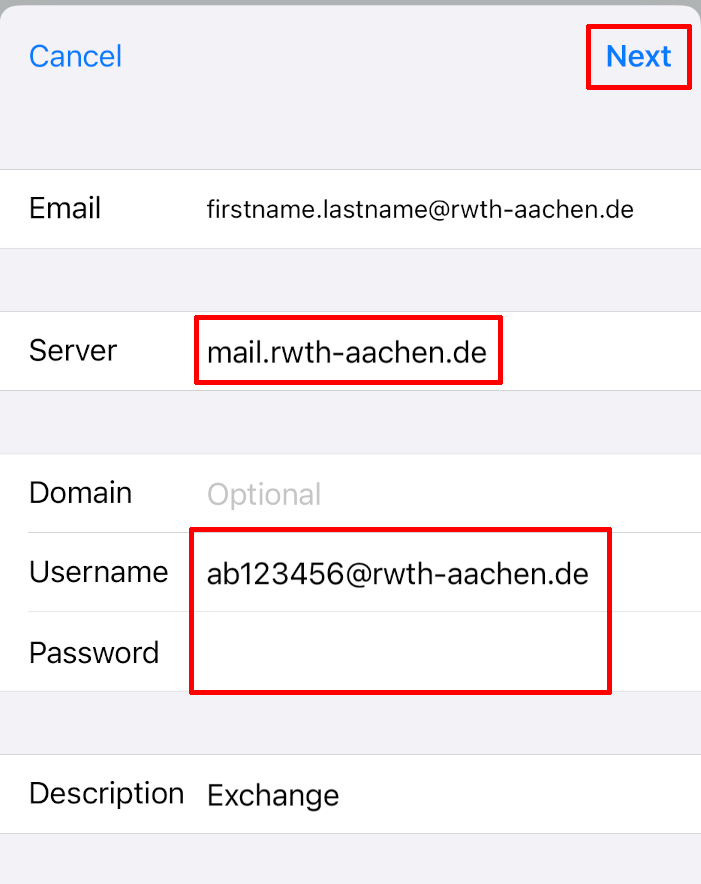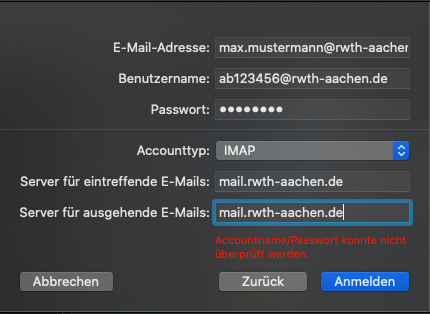 | Server for incoming e-mails | mail.rwth-aachen.de |