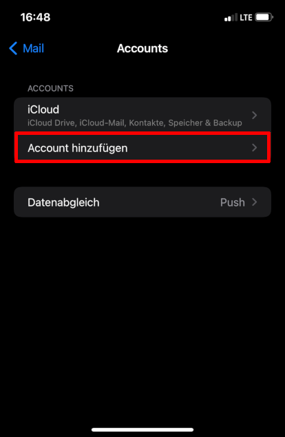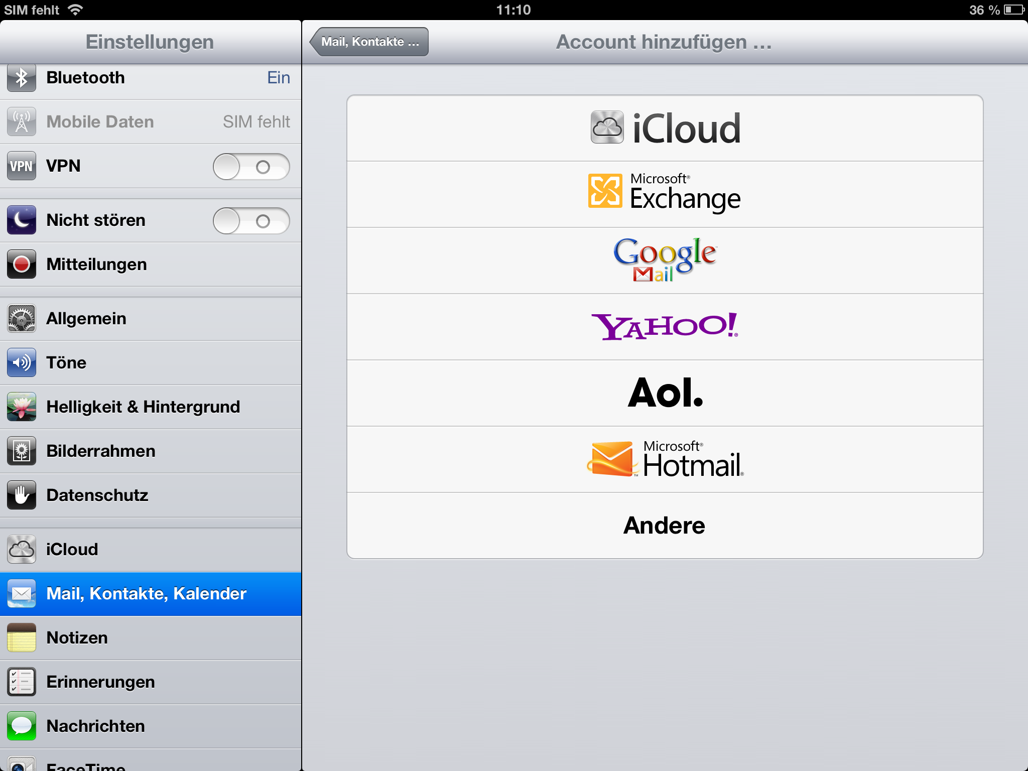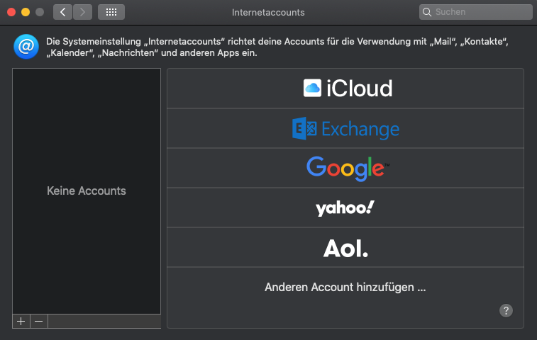 If the wizard does not start automatically, via Mail ⇒ Accounts.
