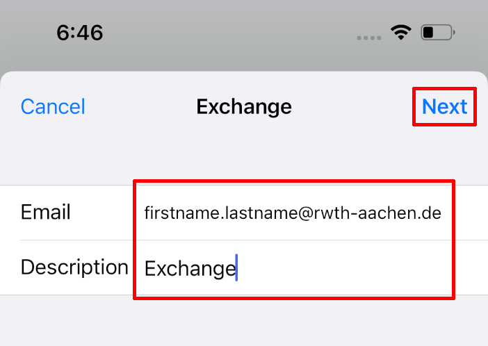 Enter your email address (in the format firstname.lastname@rwth-aachen.de or name@institution.rwth-aachen.de) and a name of your choosing for the inbox.