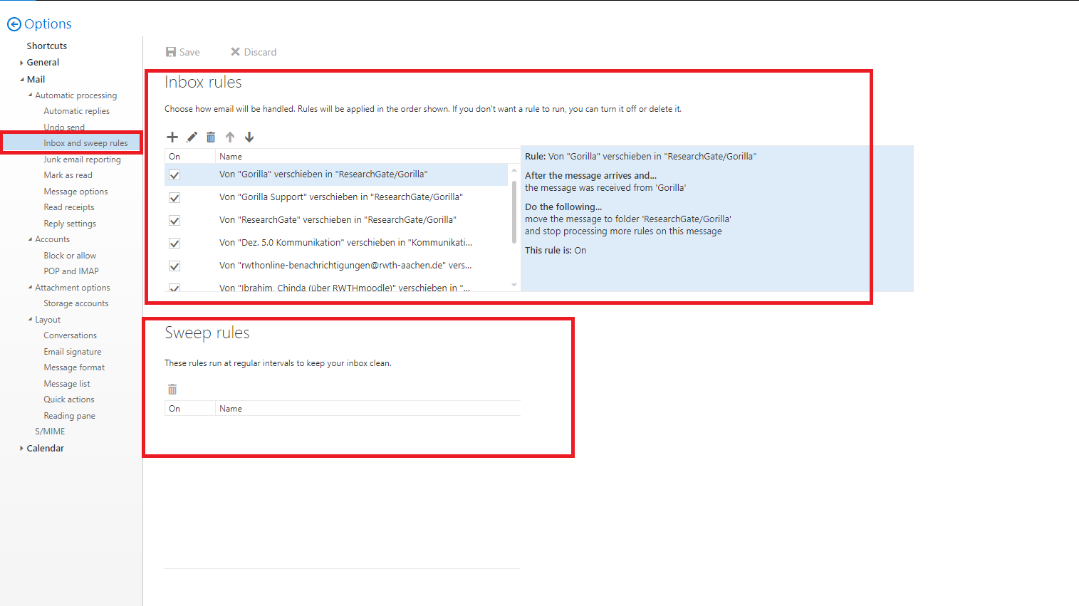 Select E-mail > Automatic processing > Inbox and sweep rules.