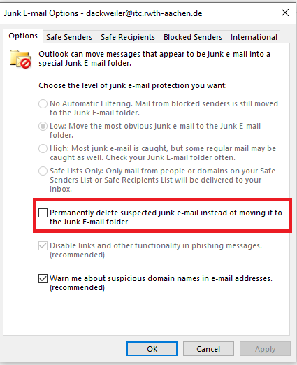 This article explains how you can configure the spam folder settings in Outlook or the RWTH MailApp.