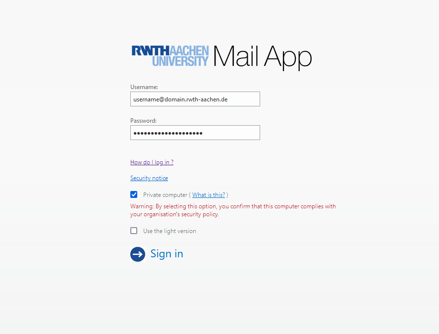 - The RWTH MailApp can be accessed by entering the URL: https://mail.rwth-aachen.de