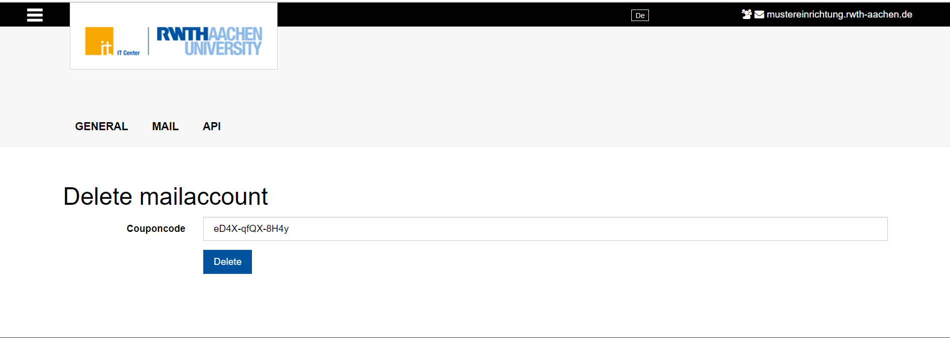To complete the deletion, you or the mail administrator of the respective domain must enter the deletion coupon code under Delete mailaccount.