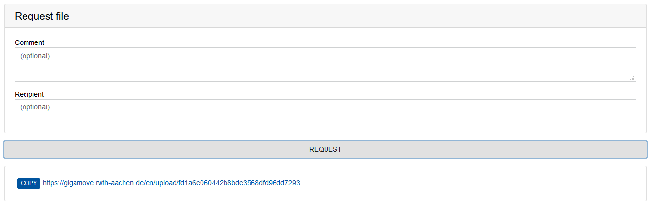 However, you can also leave a comment for the recipient of the link or have GigaMove send an email directly. To do this, enter the e-mail address of the recipient.