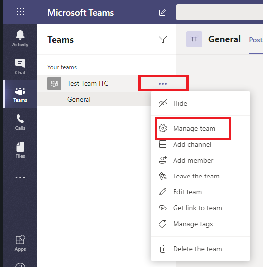 It is advisable to add at least two owners for the team administration. The settings can be found in the menu. The menu itself can be opened via three dots near the corresponding team name. Choose "Manage team" to access the team settings.