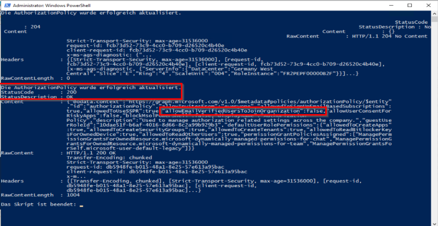 You can then close the PowerShell. If you no longer plan to use the MS Graph, we recommend removing the application from the Azure Portal.