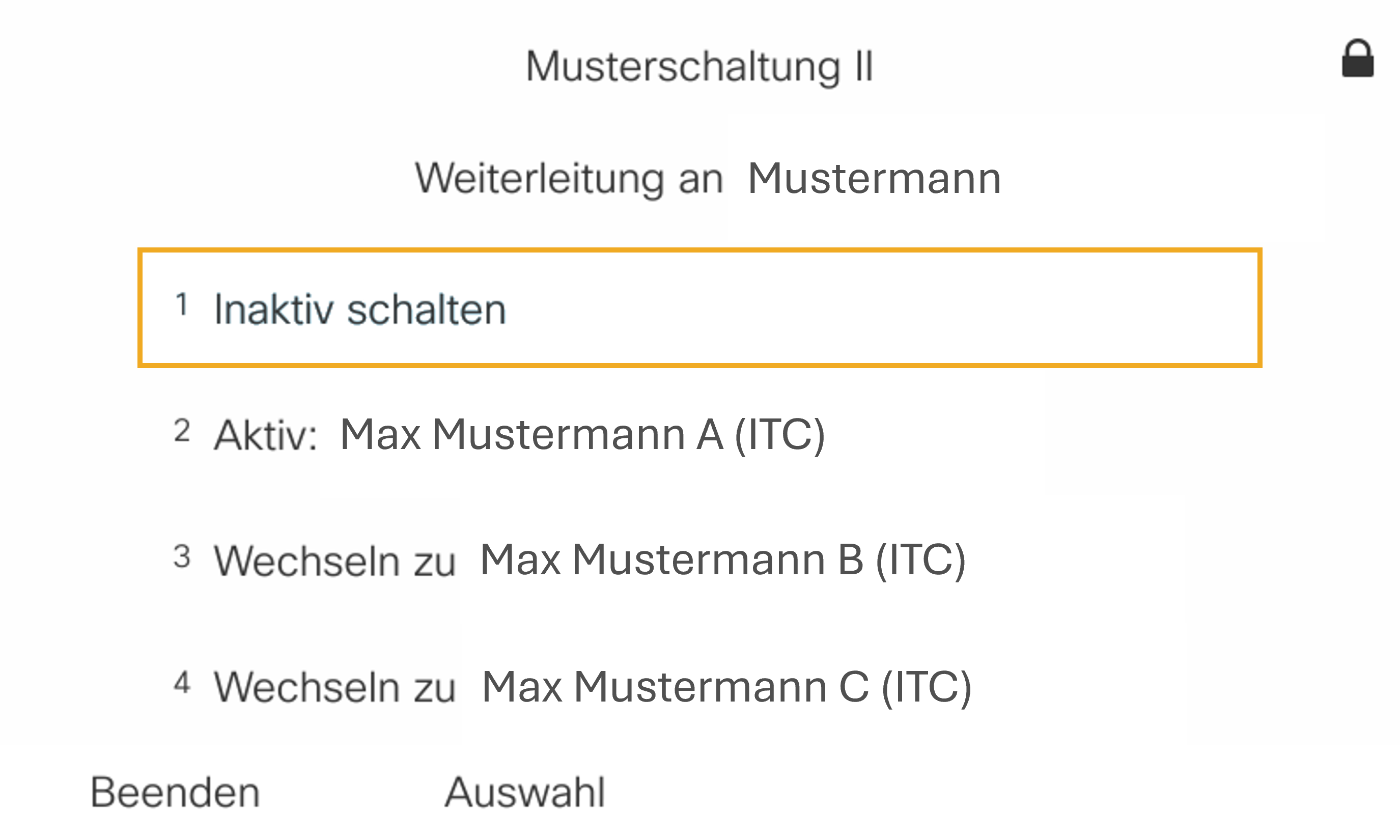 If required, you can deactivate a configured filter yourself or select other persons involved to whom the calls should be forwarded. You can use both the TK-Portal and the desk phone for this. You can find instructions to activate the Filter configuration with the desk phone below.