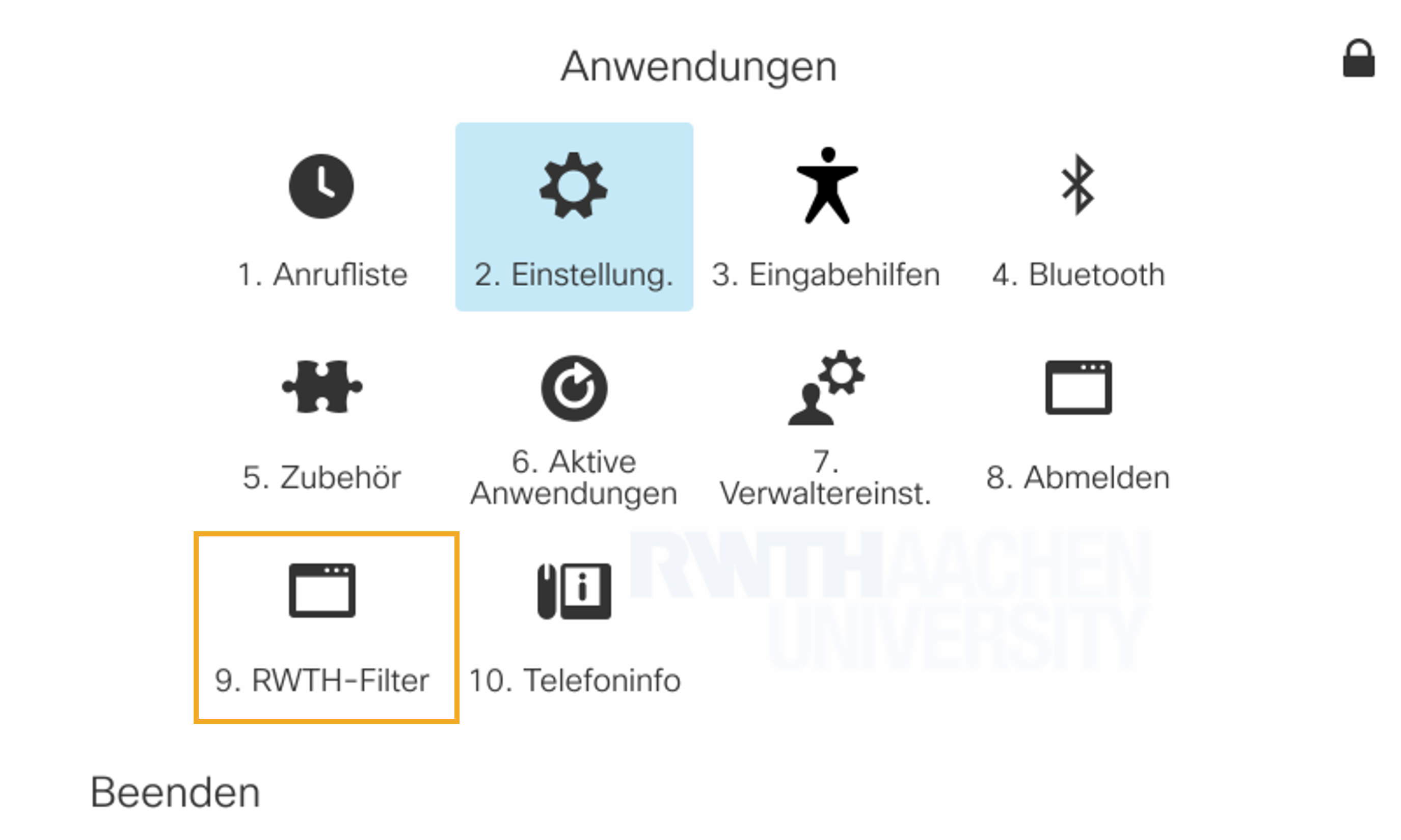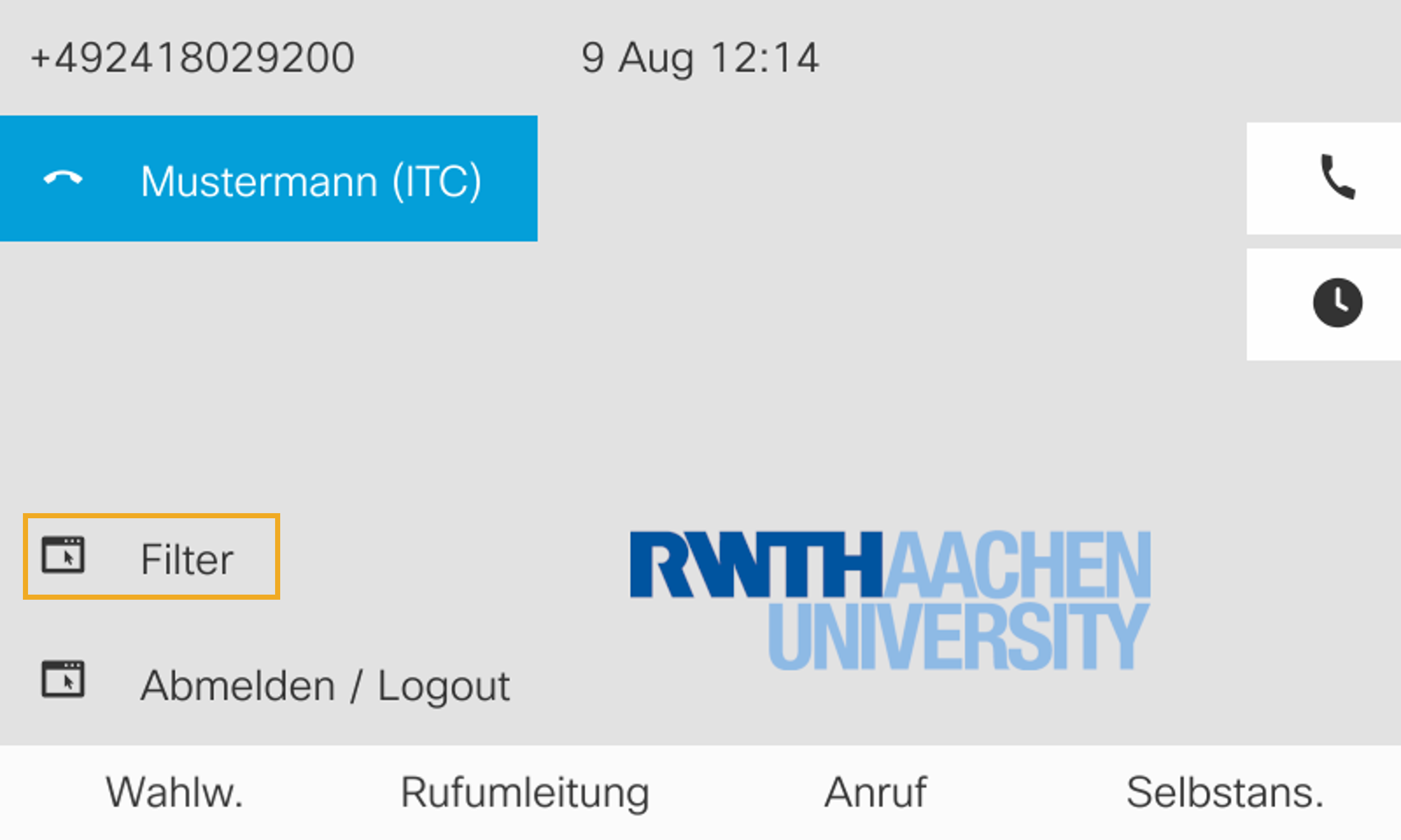 If you do not have this key, please press the cogwheel on the desk phone, you can then find and select your Filter configuration in the menu that opens.