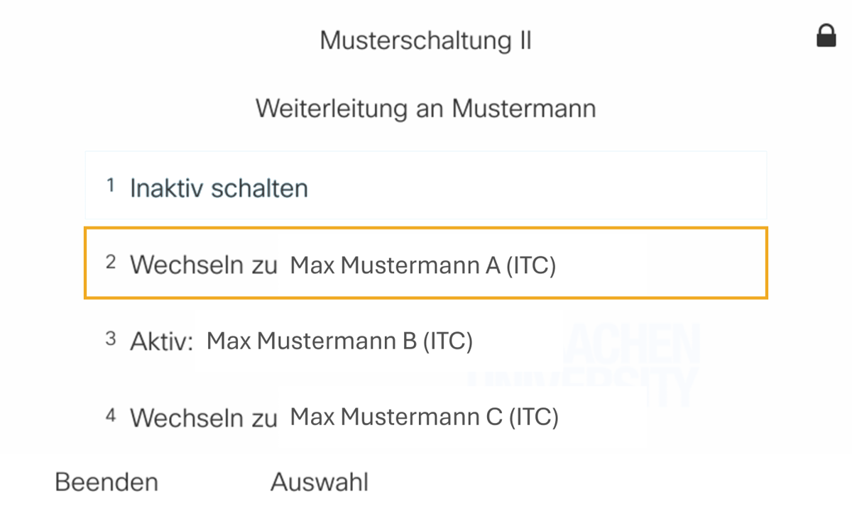 If the calls are to be forwarded to someone else, you can use the steering wheel on the phone to select either your name or the name of another employee and then confirm with select.