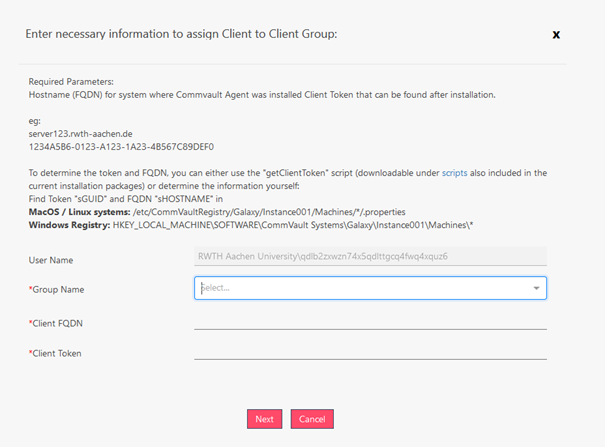 Step by step instructions for registering a new client in the Commvault Command Center (RWTH):
