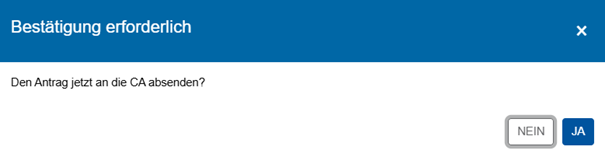 - Or you can click on the "Absenden" (send) button, and finally send your certificate application to the CA.