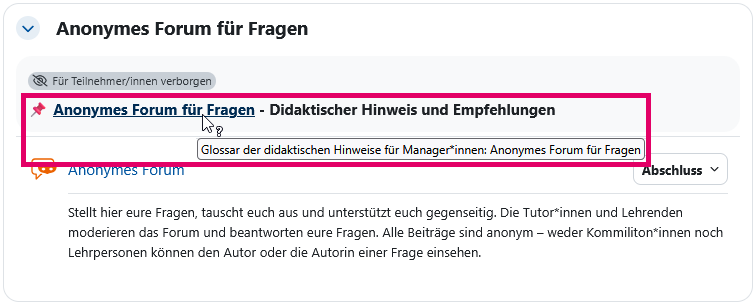 Didactic notes and recommendations in the respective sections are easily recognizable via a pin icon. These are invisible to the students and can therefore remain in the course room.