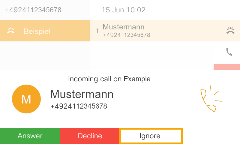 The first option is to press the Ignore soft key. The call is then ignored and the phone stops ringing.