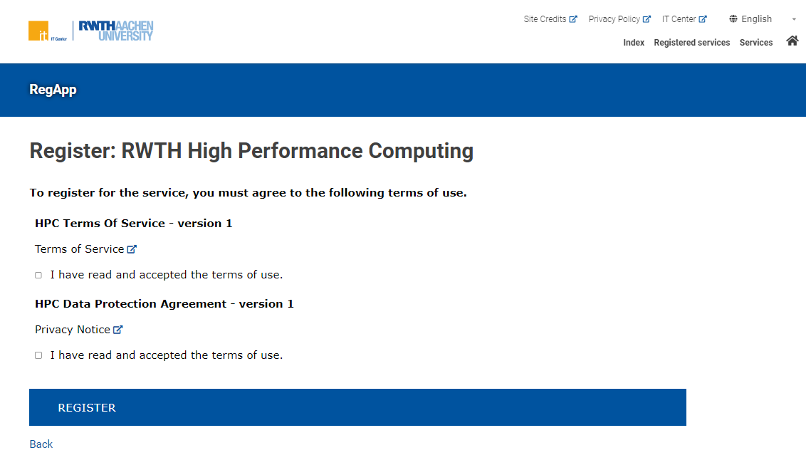 Prerequisite: you have not yet registered for the service RWTH High Performance Computing.