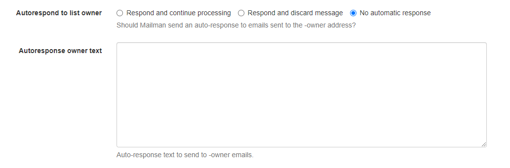 If messages sent to the owner-address of a mailing list (<listname-owner>@lists.rwth-aachen.de) should receive an automatic reply, that setting can be set here: