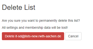 To delete a list, just press the “delete” button in the list overview of an administrator.