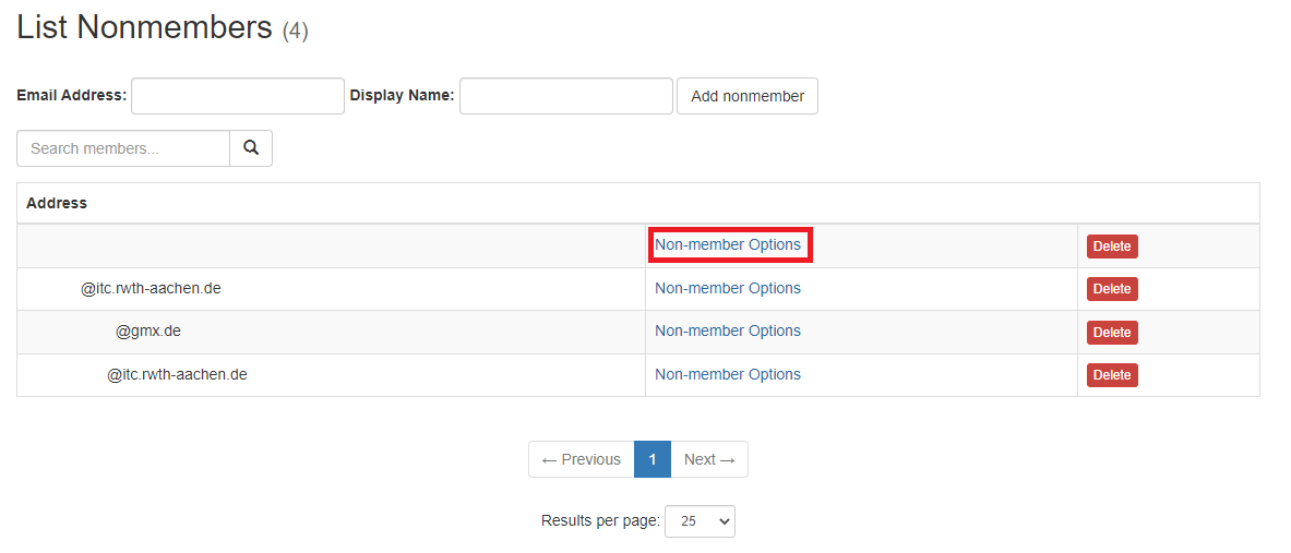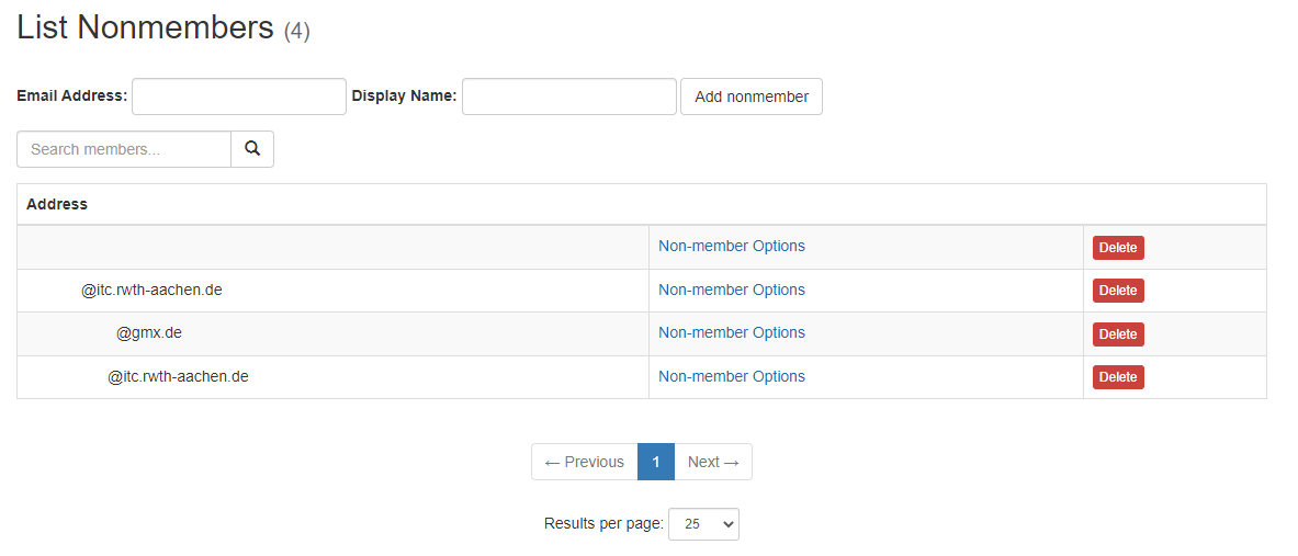 In the Mailman GUI, it is possible to set “user settings” for these non-members. This means that non members can also be allowed to send to the list.