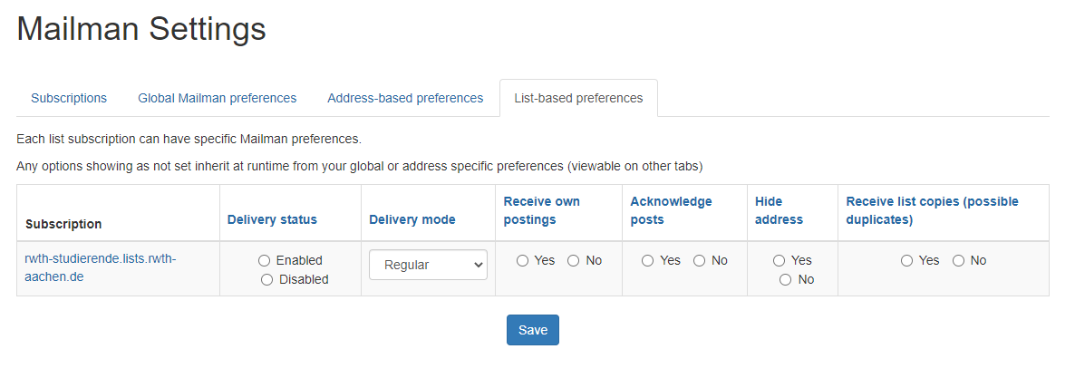 If there are no list-specific settings, the address-based or global settings will automatically apply instead.
