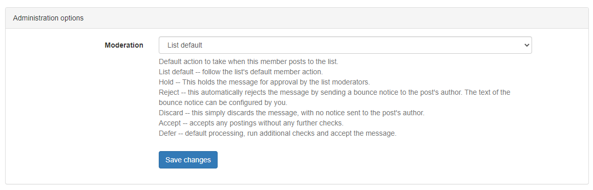 Please choose the appropriate setting. If you want to authorise a user to send to a list without need for moderator approval, select “accept immediately”.