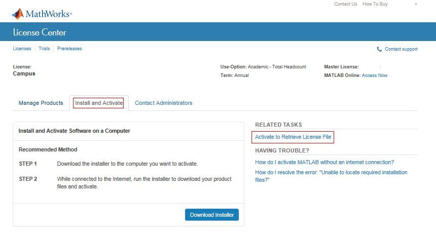 Open the request via Install and Activate → Activate to Retrieve License File.