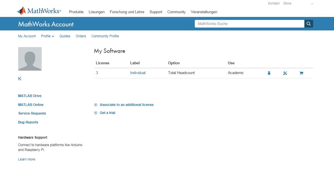 Log onto the website https://de.mathworks.com/login using your MathWorks account.