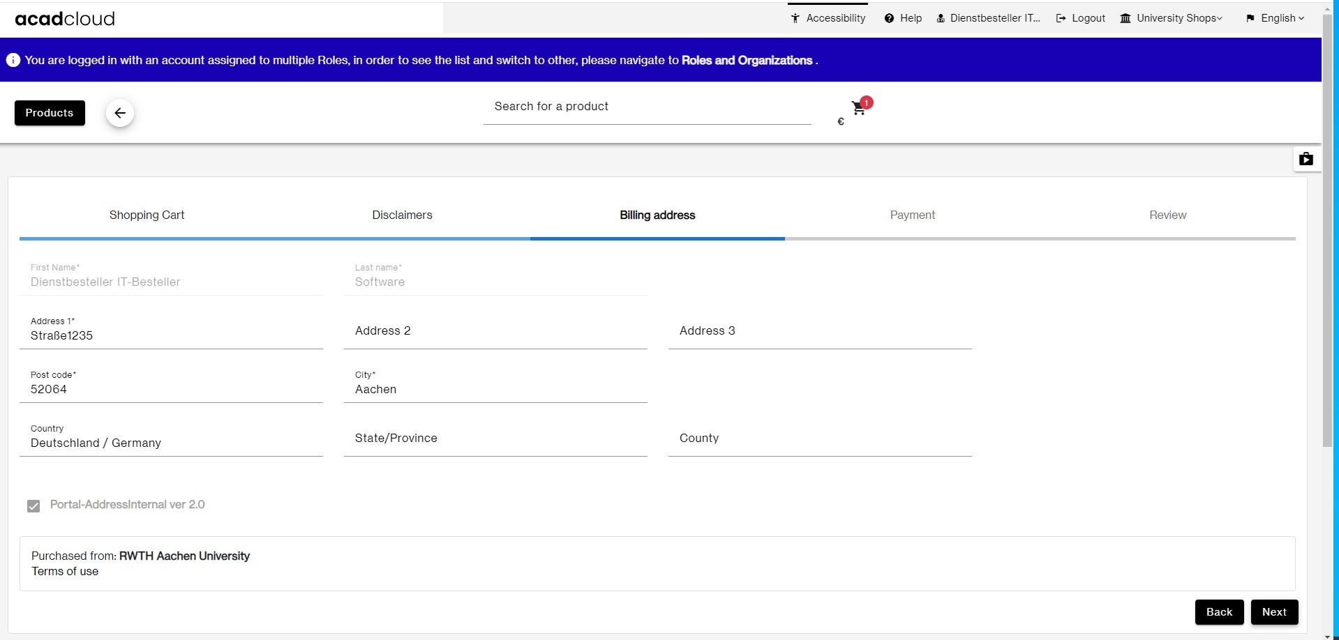 - If you want to order for a different OrgID, you can change this manually in the shop. For this see Change of role for several organizational divisions.