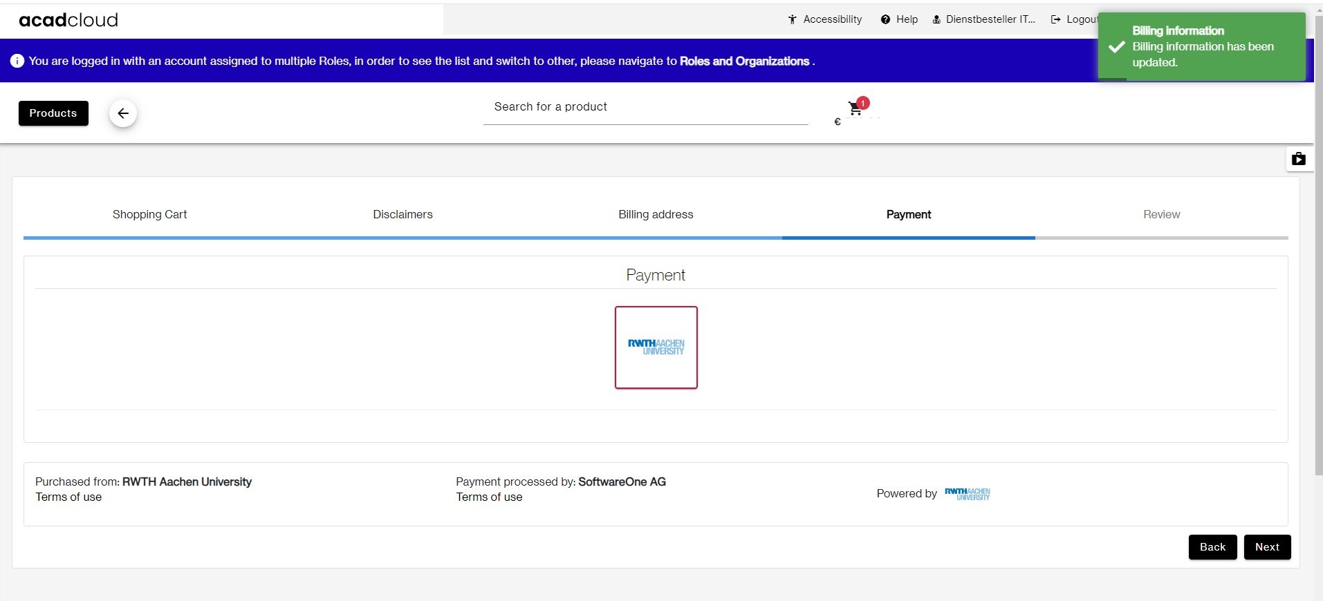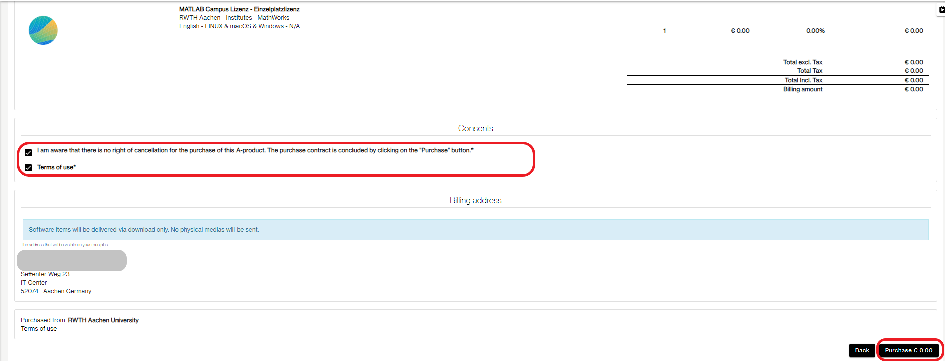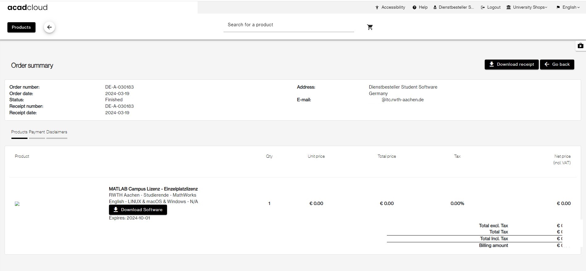 - This is either entered in RWTHcontacts (IT orders) or can be adjusted via Selfservice (students). It is automatically updated so that no manual change of the email address in the software shop is necessary.