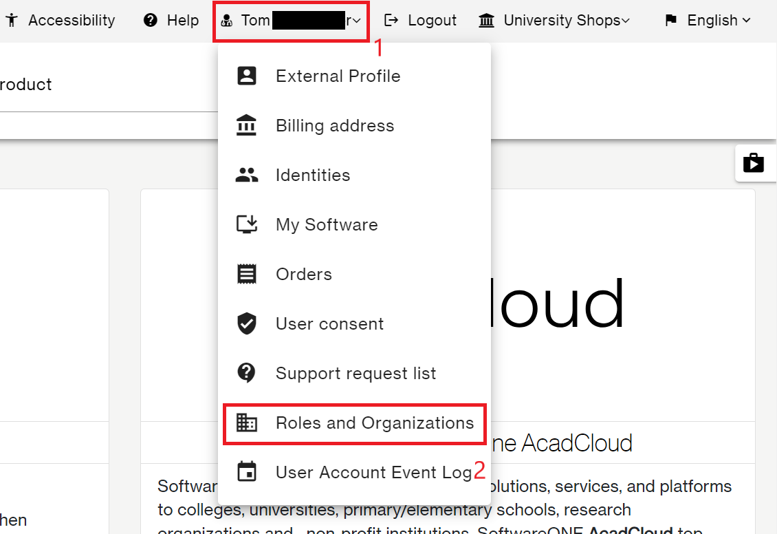 - The role and OrgID are automatically transmitted to the Software Shop via the SSO login and do not need to be entered separately.
