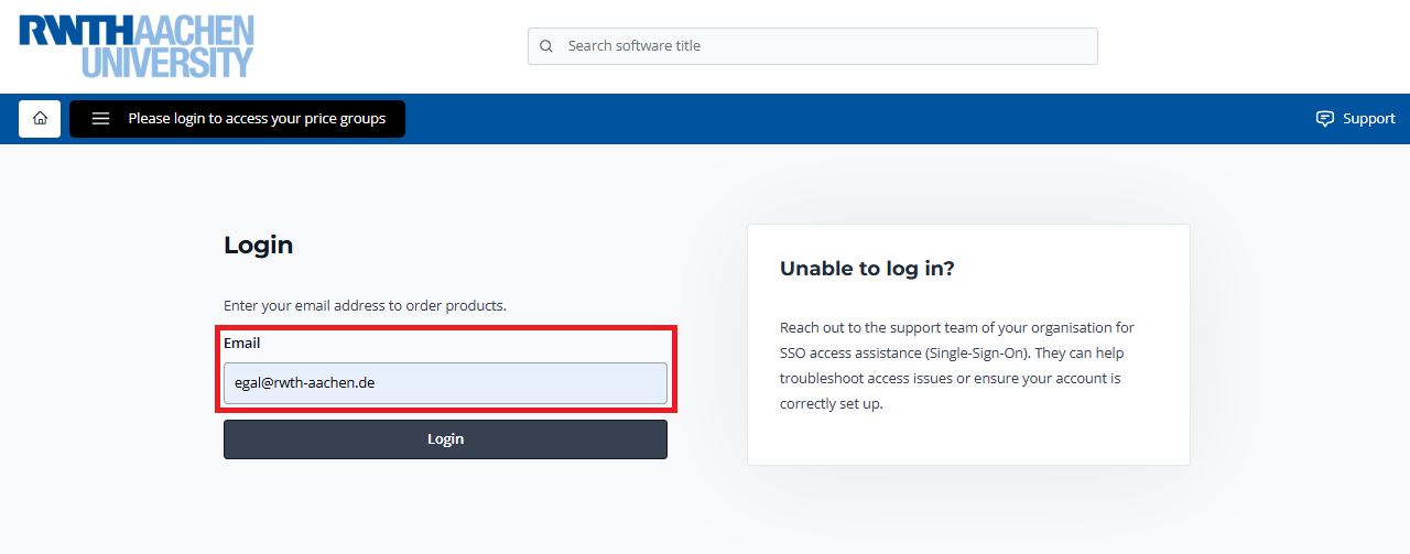 Open the Academic Software website and enter the email address egal@rwth-aachen.de.