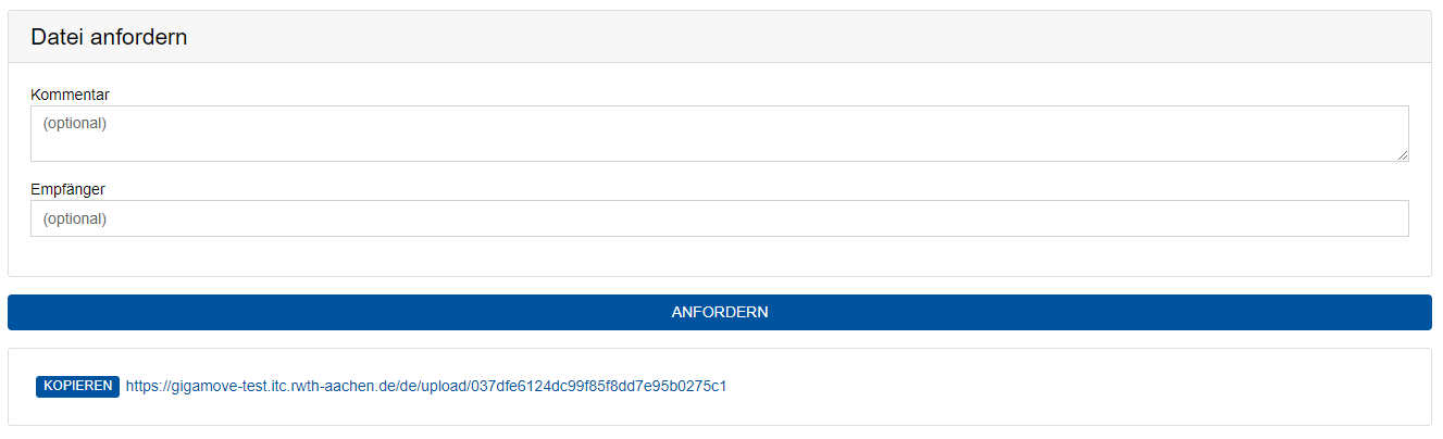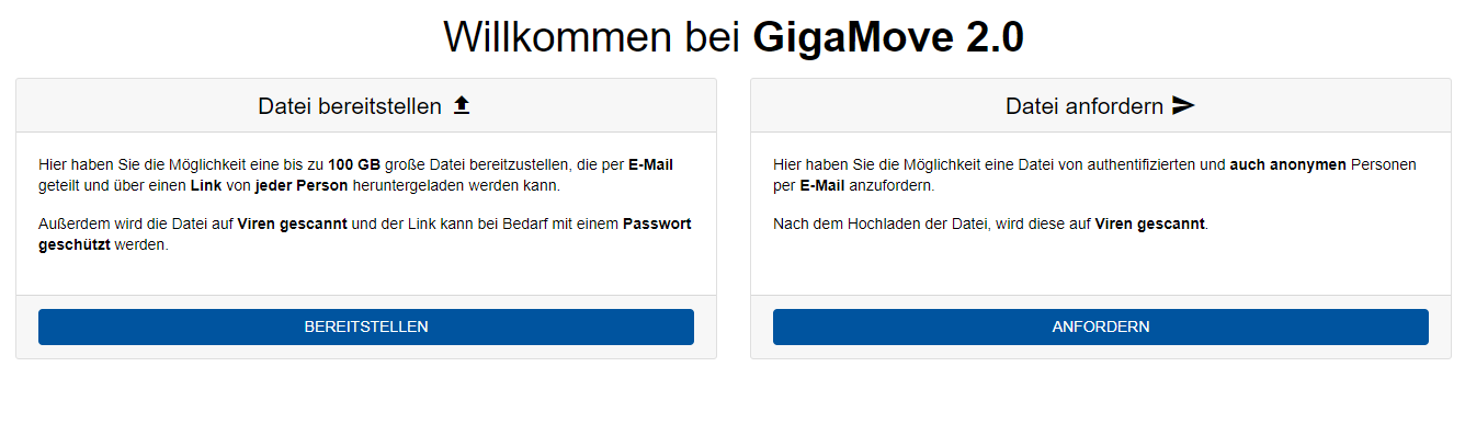 Auf dieser Seite erfahren Sie, wie Sie Dateien über GigaMove anfordern können.