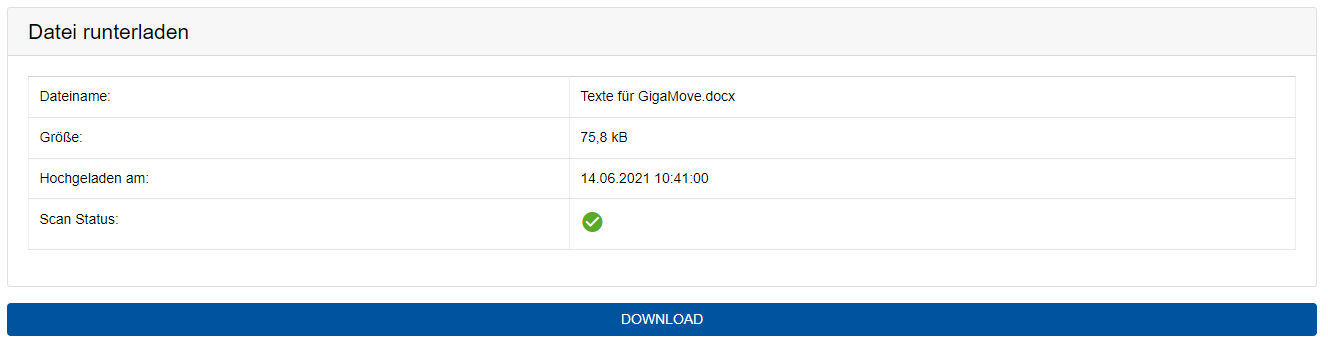Wurde die Datei für Sie hochgeladen, erhalten Sie eine Benachrichtigung per E-Mail und können die Datei über den Link aus der E-Mail herunterladen.