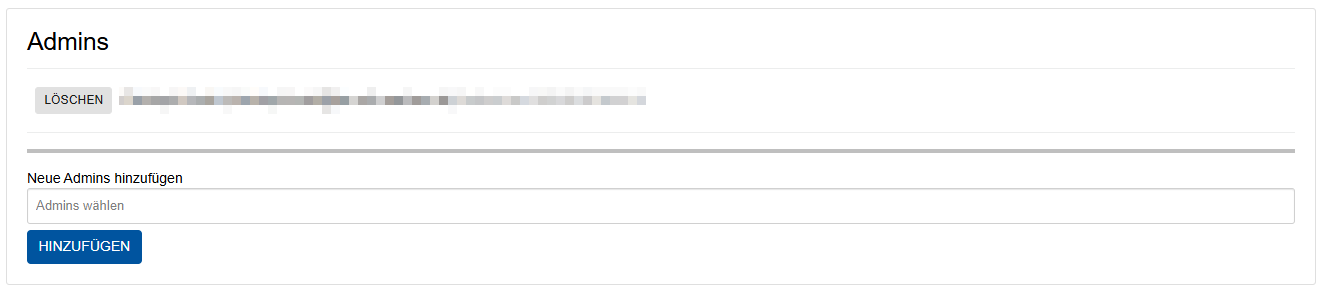 Zusätzlich können Sie Admins für Ihr Datenprojekt entweder ergänzen oder löschen.