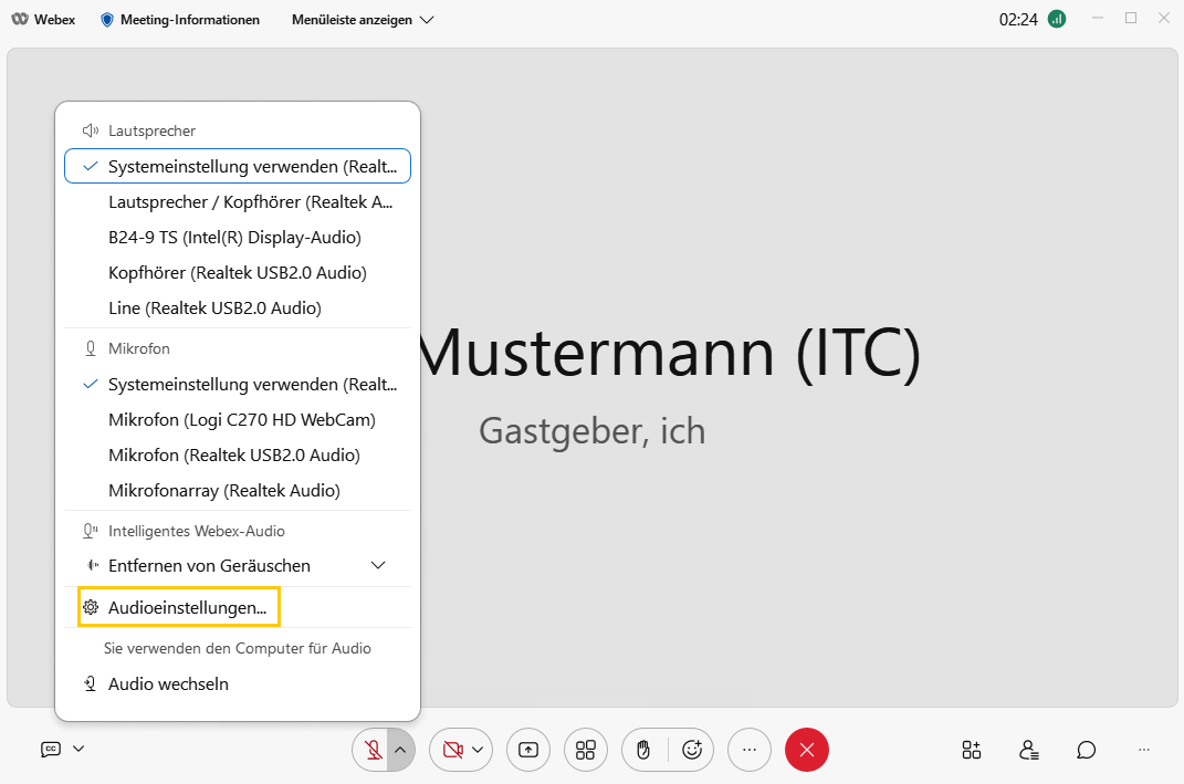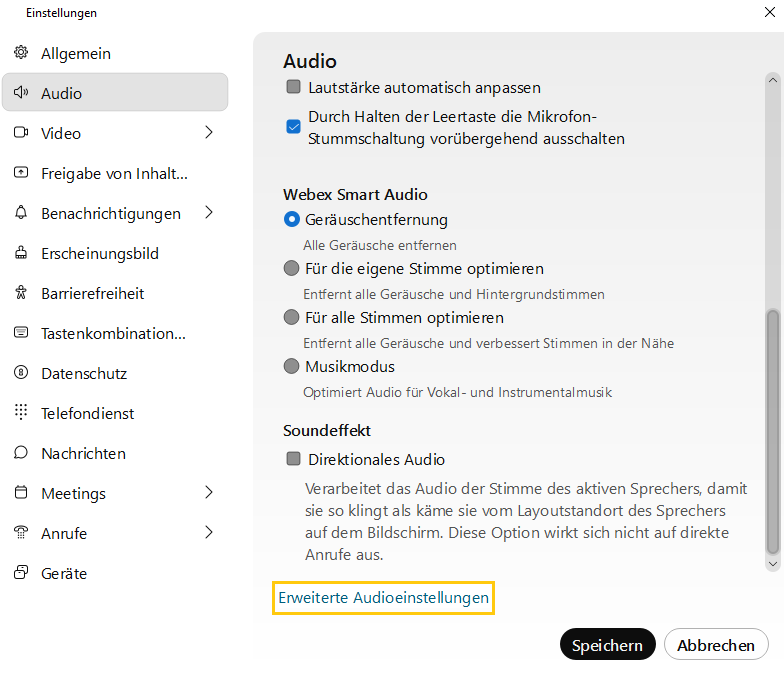 Sie können die Audioeinstellungen Ihres Webex Clients bearbeiten.