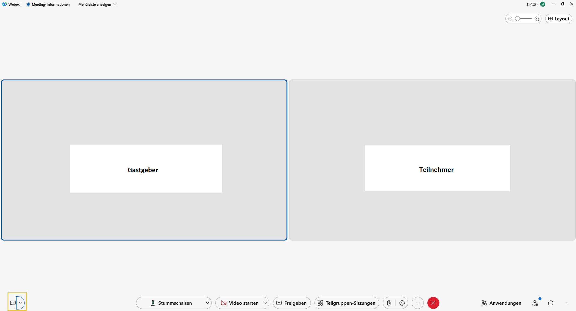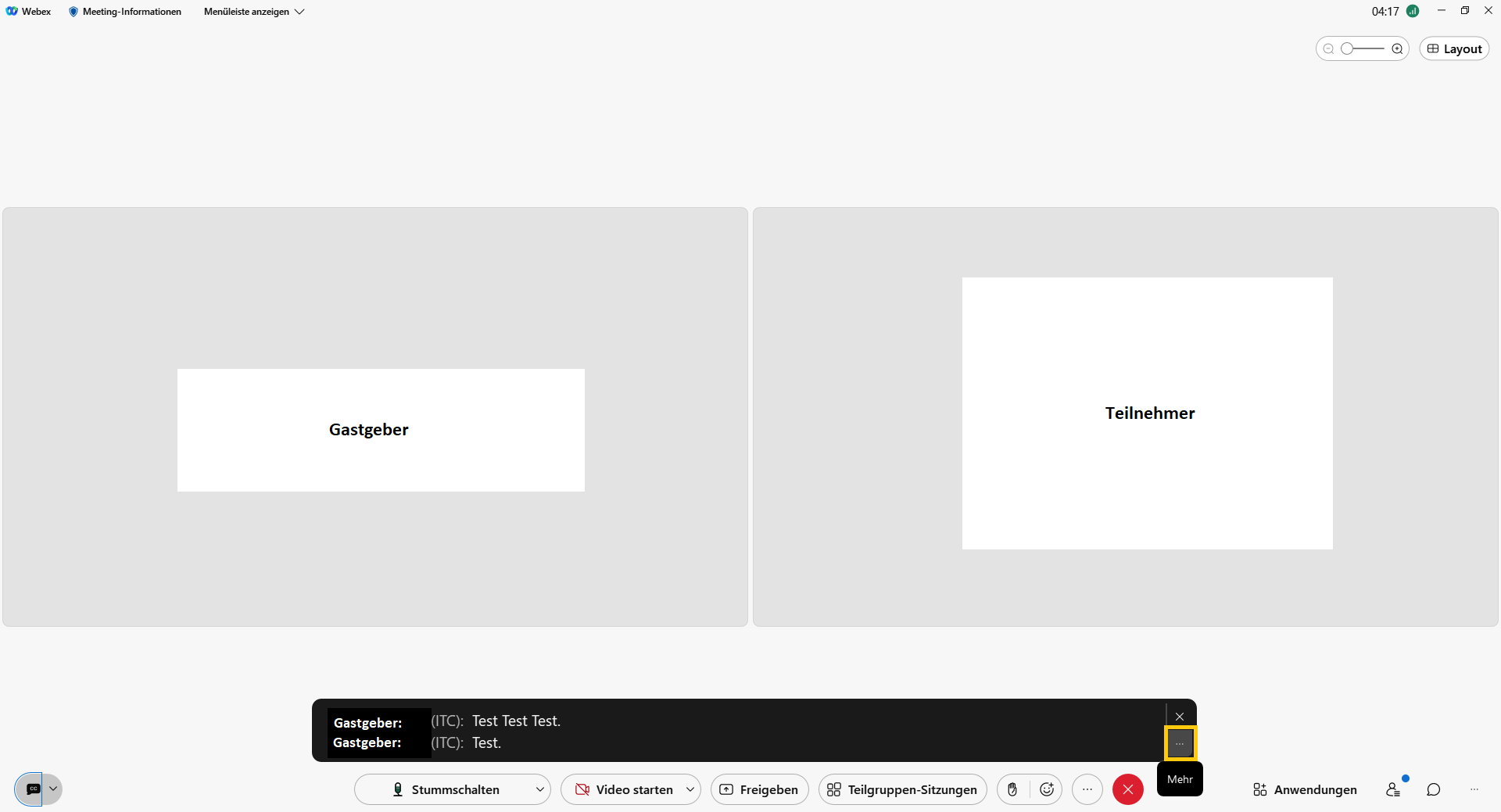 Klicken Sie dazu im Meeting Fenster unten links auf den Sprechblasen-Icon, um die Untertitel einzublenden.
