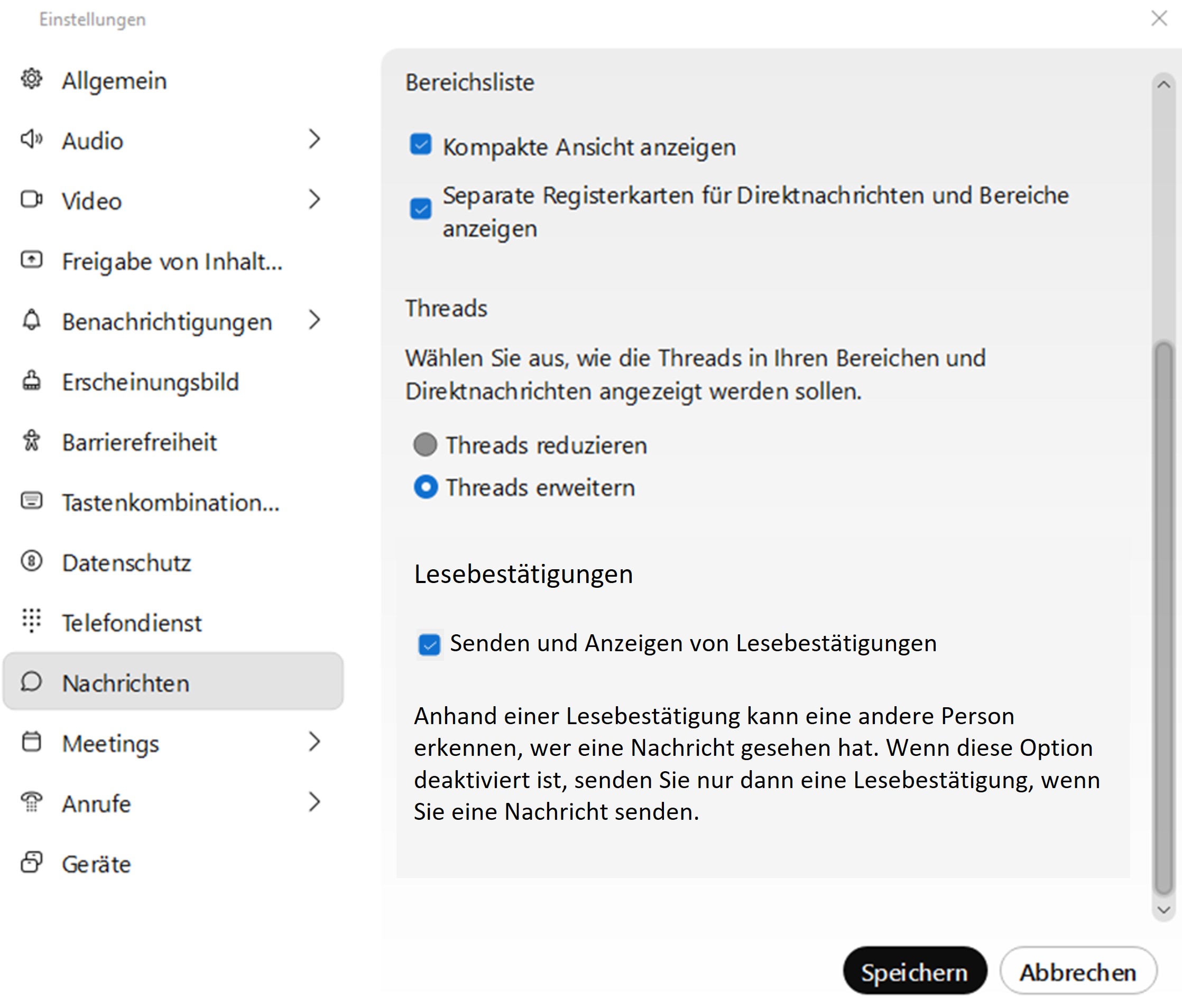 In den Einstellungen zu den Nachrichten ist es möglich, dass Sie Lesebestätigungen ein- oder ausschalten.
