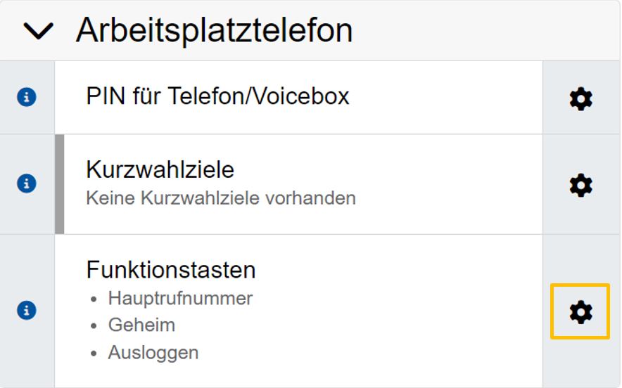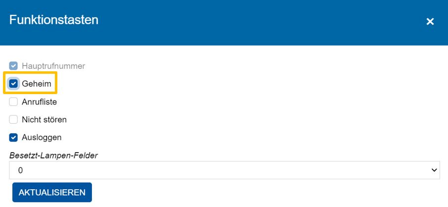 Klicken Sie hierfür unter Arbeitsplatztelefon auf das Einstellungsrad. Wählen Sie im nächsten Fenster Geheim aus.