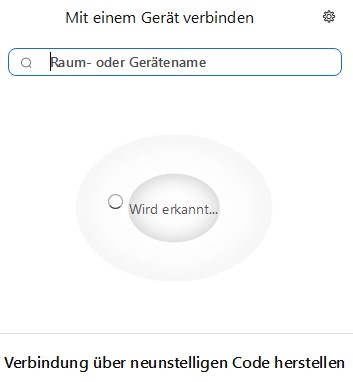 An dieser Stelle haben Sie die Möglichkeit, sich mit einem Gerät über dessen Namen oder über einen Webex-Code zu verbinden. Dieser Code erscheint beim Verbinden auf dem Gerät.