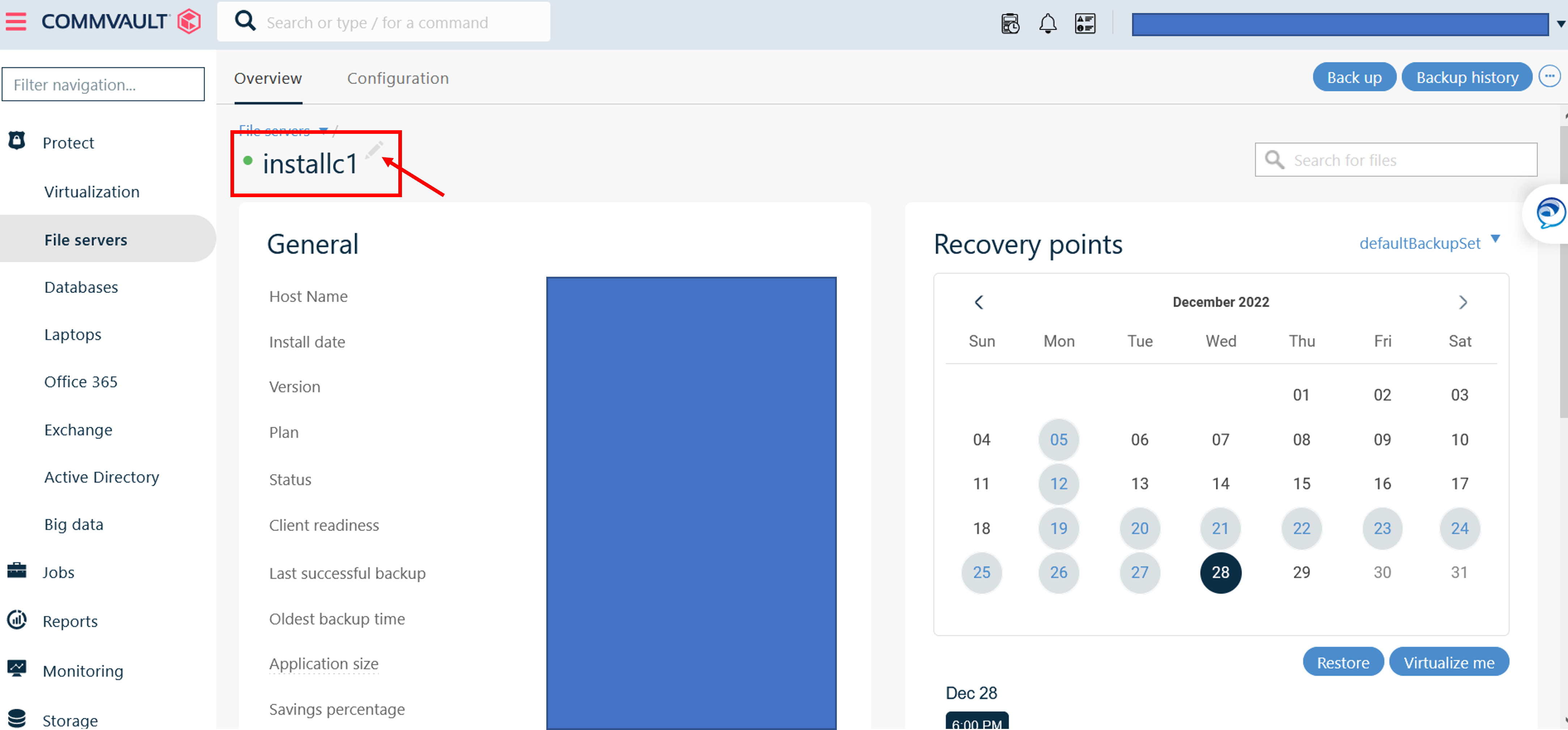 - Wählen Sie in der entsprechenden Übersicht, hier beispielsweise 'File Servers', ihren entsprechenden Client aus.
