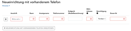 - Die Angabe der MAC-Adresse ist nur erforderlich, wenn das vorhandene Endgerät ein IP-Apparat ist. MAC-Adresse mit Doppelpunkt eingeben: AA:BB:CC:DD:EE:FF