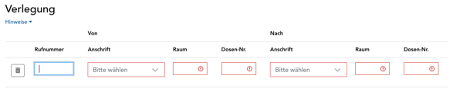 Füllen Sie bitte das Feld aus, falls Sie Verlegungen von Telefonendgeräten in andere Gebäude oder andere Räume beantragen möchten.