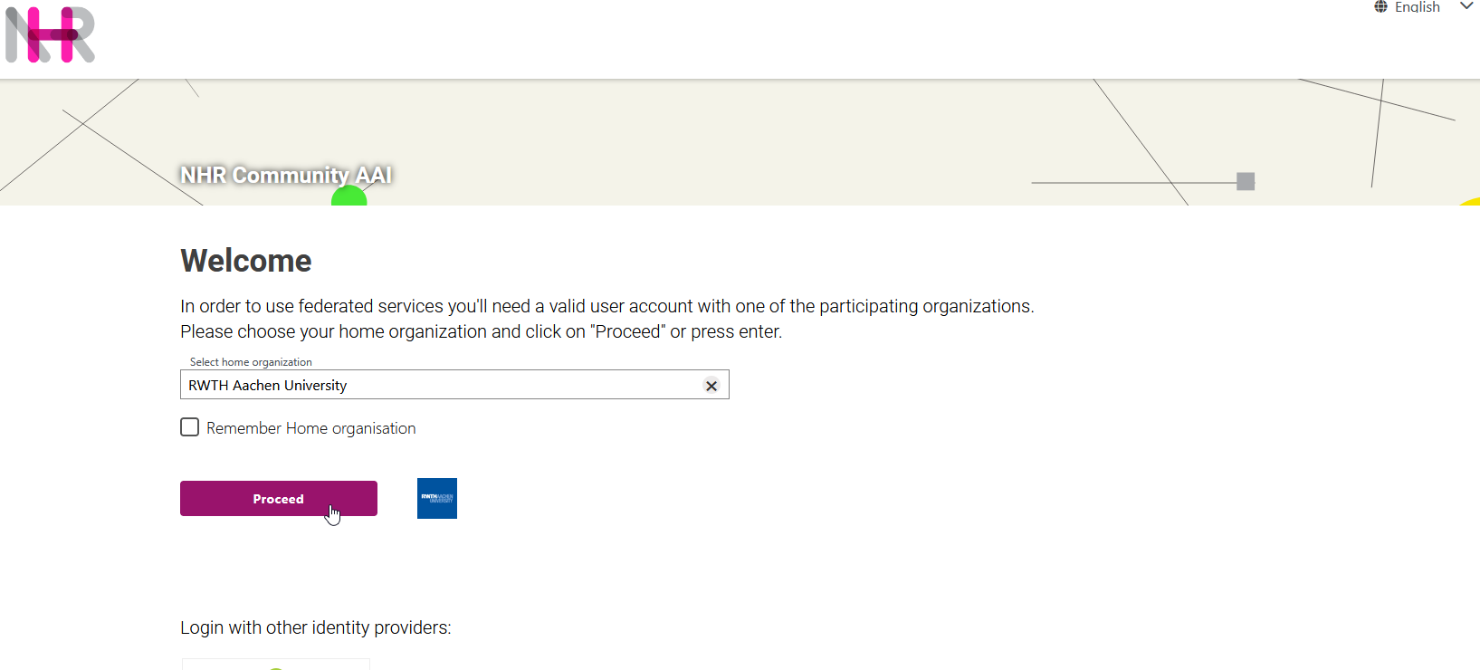 To login please select "RWTH Aachen University" as your home organization. Click on the "Proceed" button to continue.