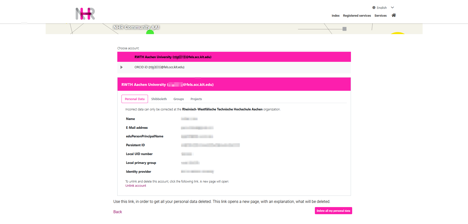 Before you begin, please note: Adding a new Identity Provider for the RWTH RegApp is carried out within the NHR RegApp, which acts as a proxy for the former. The NHR RegApp is only needed for completing this change. Afterwards, you will continue to use the RWTH RegApp to manage your HPC account as usual.