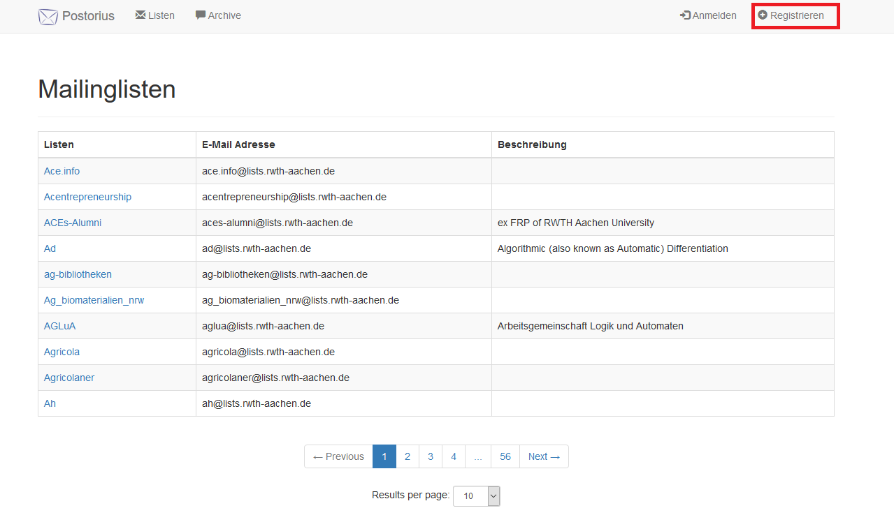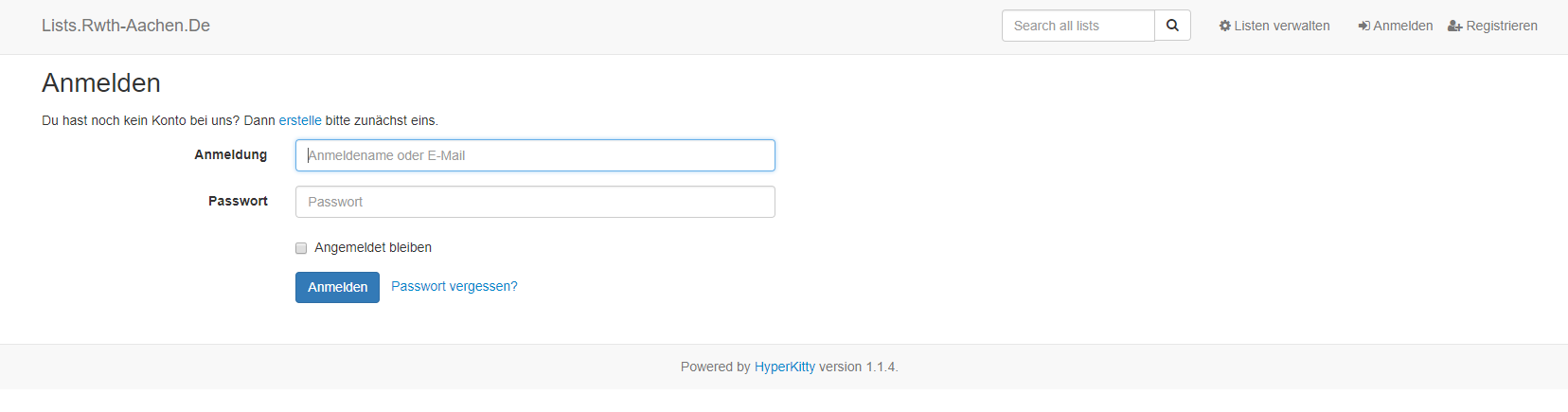Falls Sie bisher keinen Account im Mailman haben, müssen Sie sich zuerst registrieren. Ein Account ist absolut ausreichend, da Sie ihrem Account mehrere E-Mailadressen hinzufügen können.