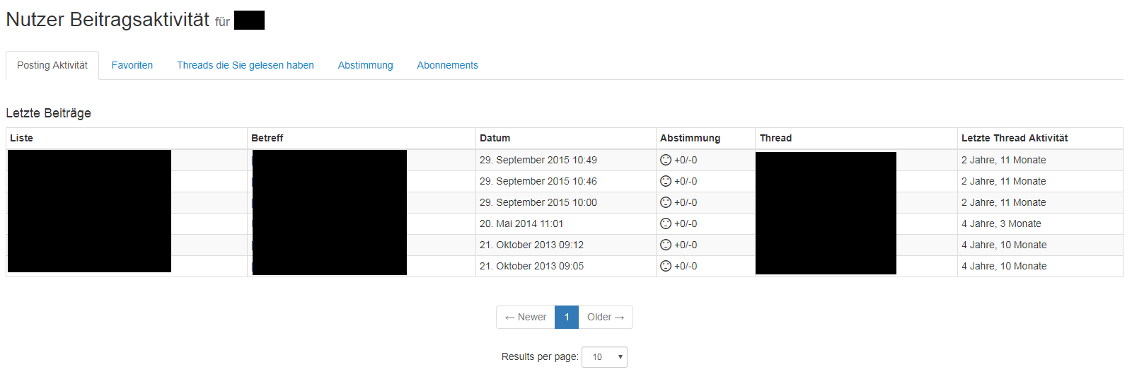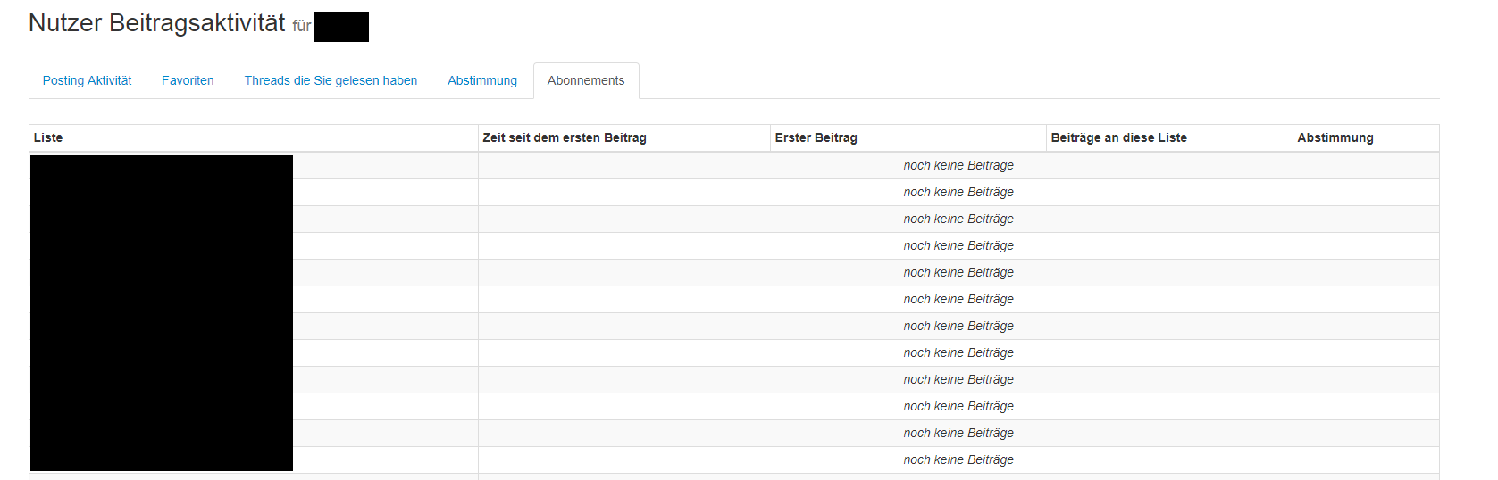 Bei der Posting Aktivität des Benutzers geht es um Statistiken die Hyperkitty generiert.