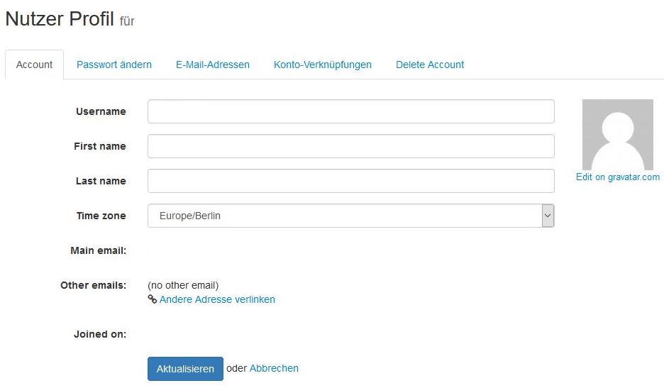 In ihrem persönlichen Account können Sie Informationen wie Vorname/Name hinterlegen.