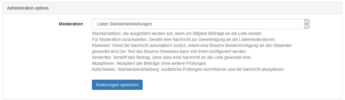Hier sehen wir nun die Subscription Options. Generell gilt, wenn in Mailman keine Optionen gesetzt sind, gelten globale Einstellungen.