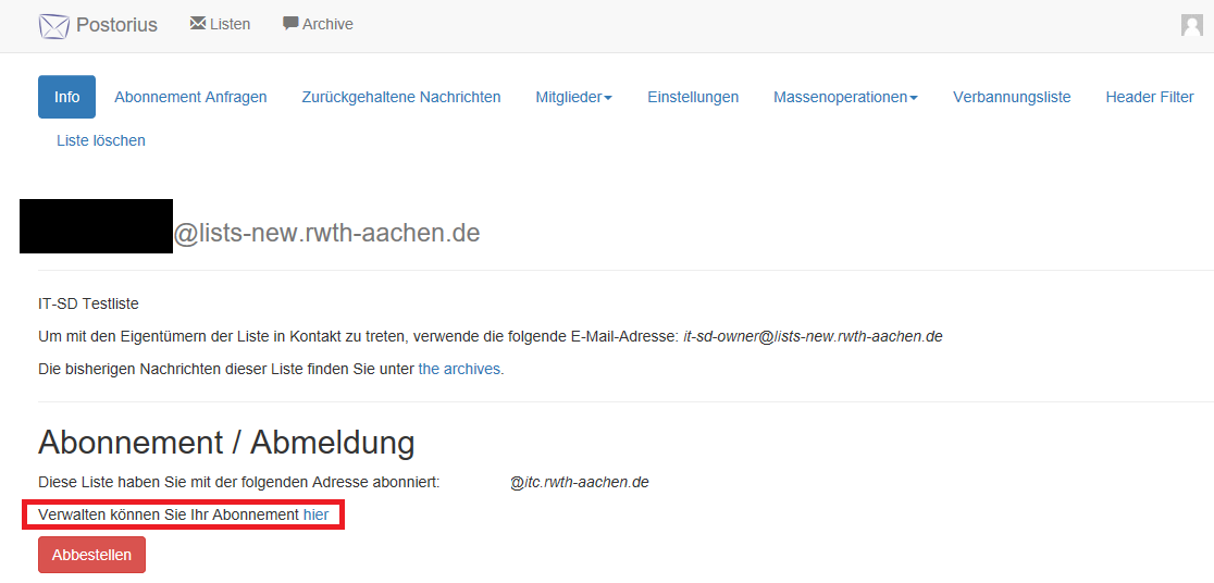 Möchte man einem einzelnen Nutzer, aus der Mailingliste, beispielsweise erlauben an die LIste zu senden, obwohl es sich um eine Ankündigungliste handelt, kann man dies auch in den Benutzereinstellungen machen.