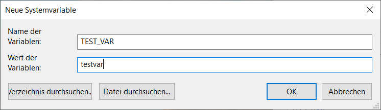 4. Name der Variable und Wert der Variable festlegen und mit OK bestätigen.